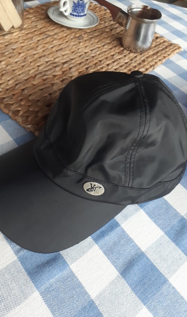 Parlak sentetik kumaştan yapılmış, düğmeli detaylı siyah kadın spor şapkası, rahat sokak stili için uygundur.
