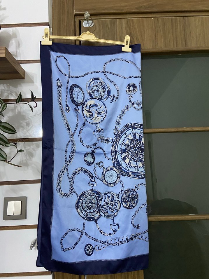 Bu kadın eşarp, zincir detaylı parlak mavi tekstilden yapılmıştır. Bohem tarzda, Parisli retro ve hippie esintileri taşır. Yeni ✨
