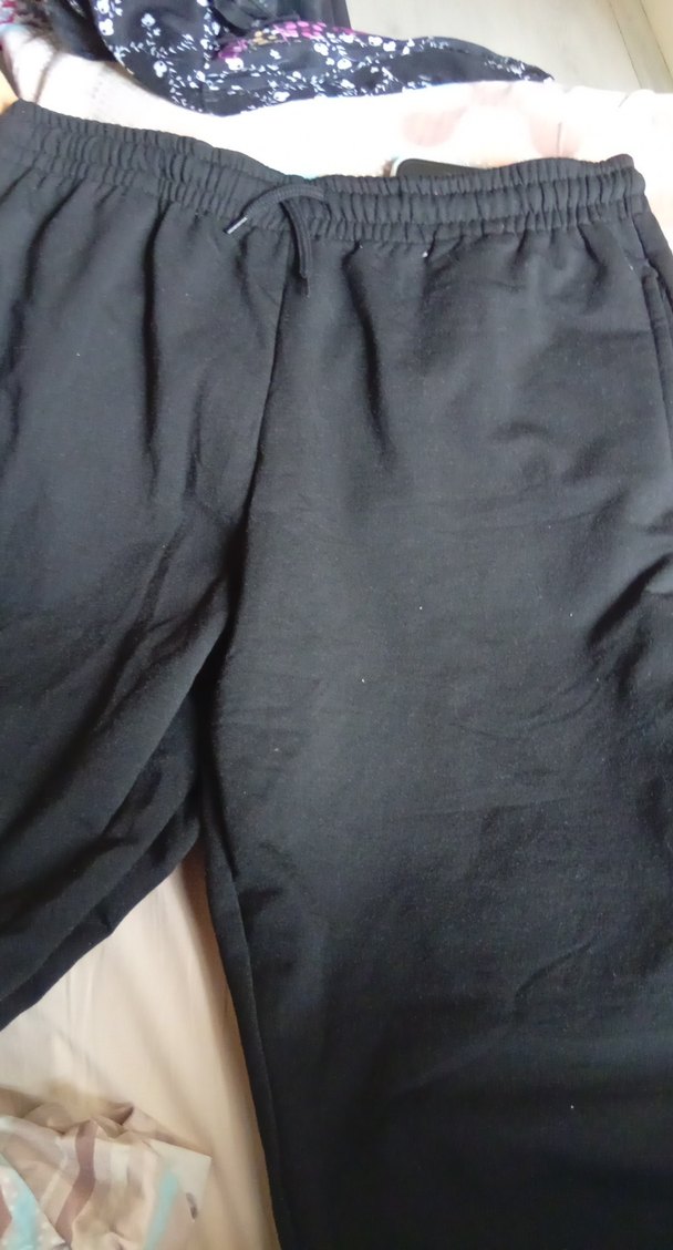 Düğmeli, bol kesim siyah kadın eşofman altı. Midi boy, elastik bel ve sade desensiz tasarıma sahiptir. Günlük kullanıma uygundur.