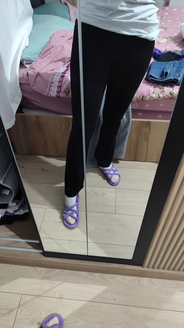 Kadın kalın tayt eşofman likralı İspanyol paça M beden ancak S De olur denemek için giydim 1.65 boy 58 kg