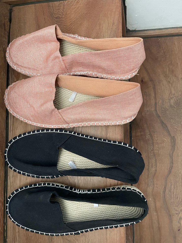 Siyah ve pembe Espadril . Siyah hiç giyilmedi pembe 1 kere giyildi. Marka olarak bilmiyorum Almanya’dan alınmıştı. Ürün ikisi bir gönderilecektir. Sadece siyahı ya da pembeyi istiyorum teklifi yapmayınız.