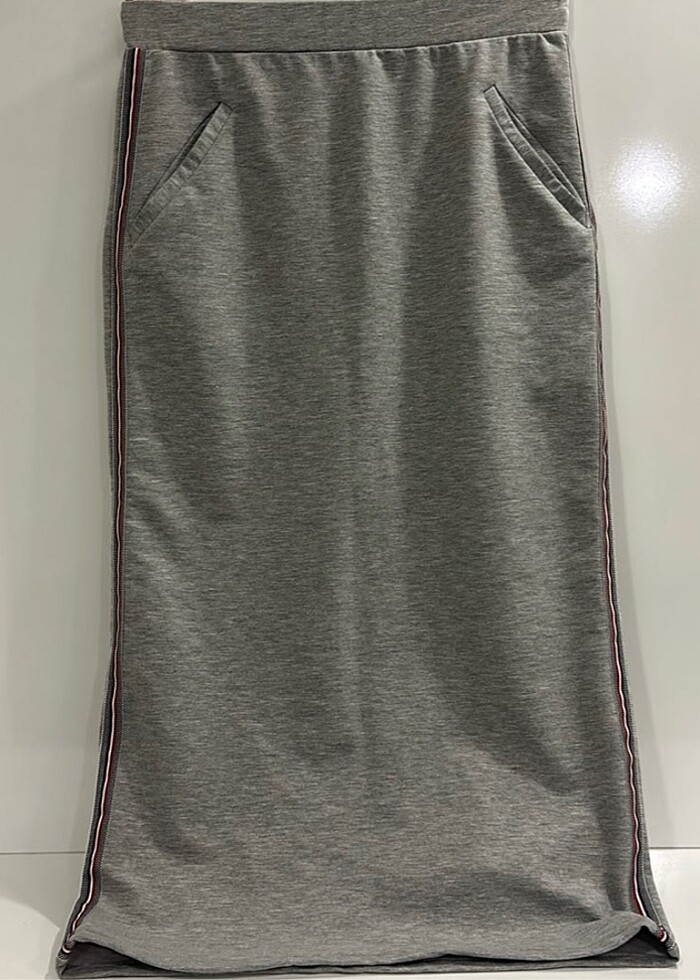 S-M beden uyumlu. İki kenarda şeritli. Cep mevcut