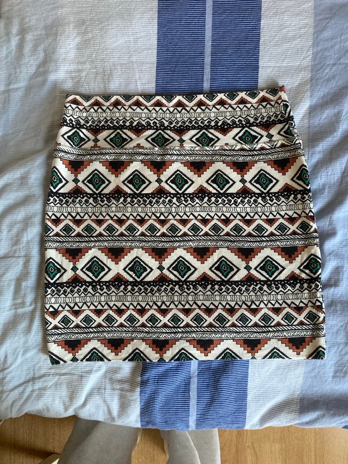 Bu vücuda oturan mini etek, karanlık ve çok renkli bohem desenli örme tekstilden yapılmıştır. Normal uzunluğu ve özgün tasarımı günlük kullanım için uygundur. Ciddi alıcılara indirim yapılabilir.