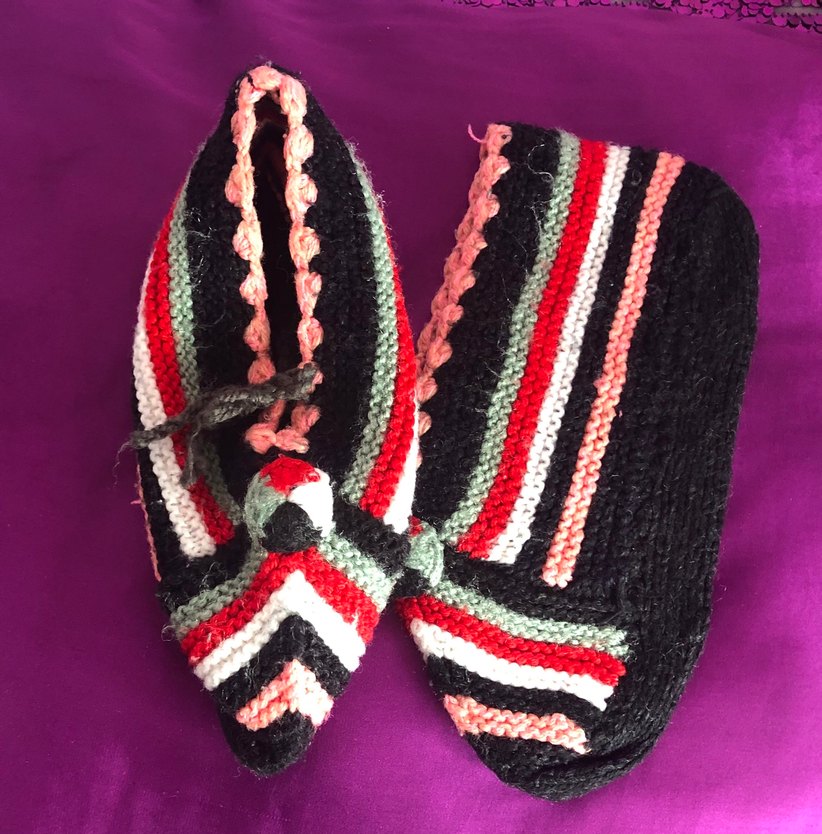 Sıfır üründür.. Hiç kullanılmamıştır..El emeğidir..Sıcak tutar..Standarttır.. Her ayağa uyar..Nakışlı detaylara sahip çok renkli, koyu tonlarda örme dokulu ev çorabı ve patik..Aynı gün gönderilir..
