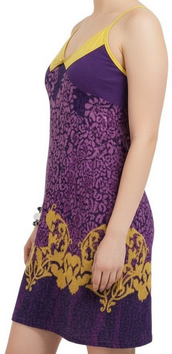 Mor, v yaka ve dantel baskılı, kolsuz, bohem tarzda, midi boy, rahat büyük beden kadın elbise. ev ve günlük için uygun.