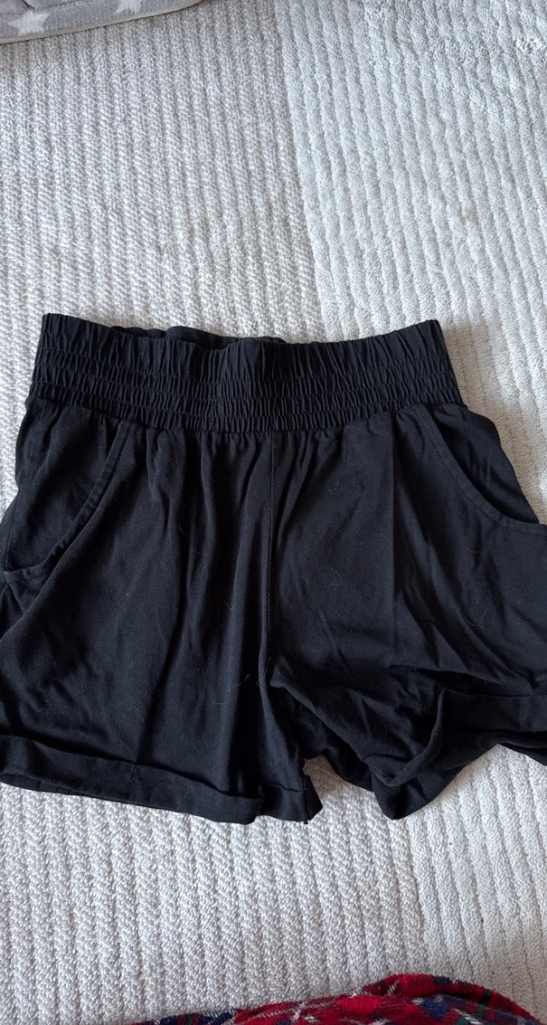 Siyah pamuklu mini şort, bol kesim ve pile detaylıdır. Rahatlık için lastikli beli vardır, günlük kullanım için uygundur.