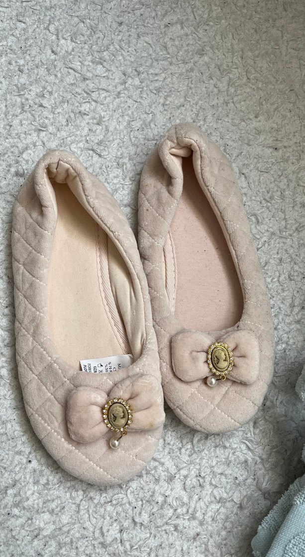 Pudra renkte, yumuşak ve sıcak kumaştan yapılmış, kadın ev terliği. Klasik ve zarif görünümlü. Kadın figürü ve fiyonk detayı bulunur. Günlük kullanım yada oturmalar için uygundur. Etiketi üzerinde hiç kullanılmadı.
