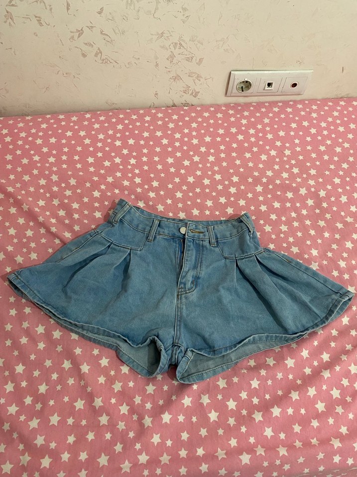 Kadınlar için bol kesim mini denim şort, fırfırlı detaylarla. Günlük sokak stiline uygun, rahat ve yumuşak denim kumaştan üretilmiştir.