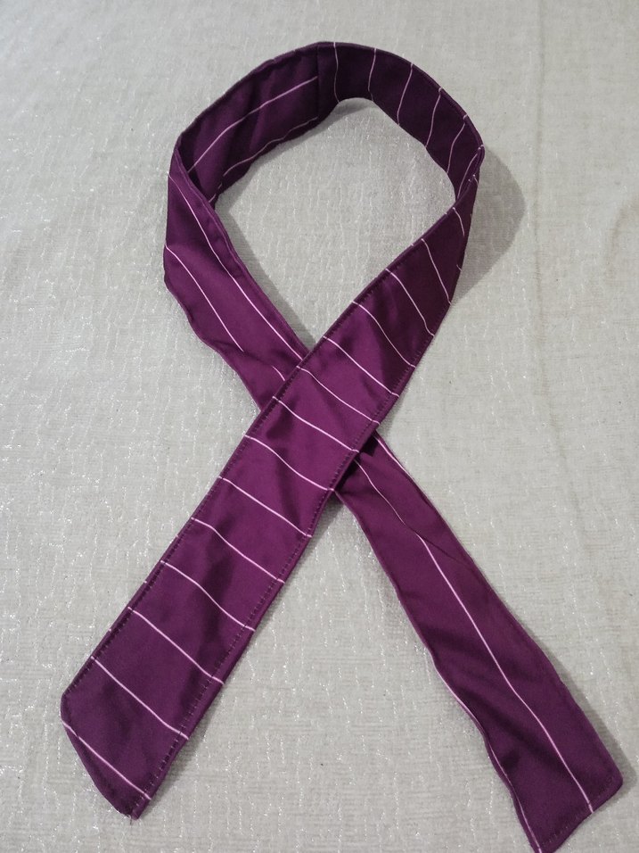 Mor zemin üzerine ince beyaz çizgilerle işlenmiş, iş ortamına uygun çağdaş ve sade kadın Fular.Düzgün dokusu ve zarif deseniyle resmi kıyafetlere şıklık katar.