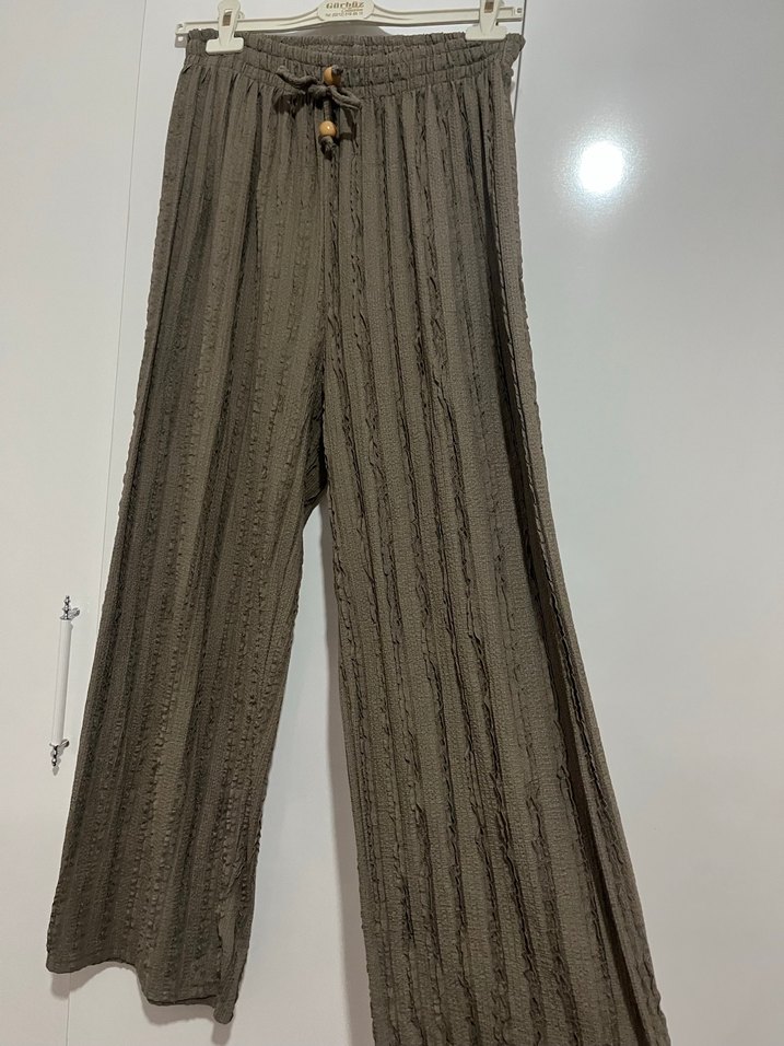 Kadın füme Piliseli Keten Bol Pantolon