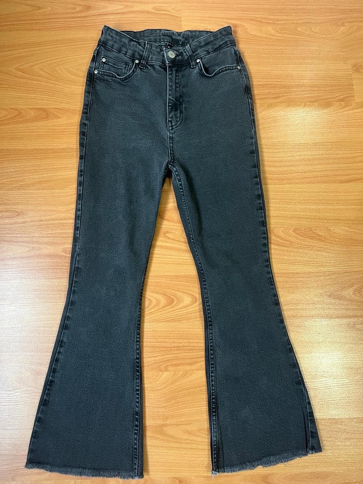Kadın Füme Renk Kesik Paça Denim Pantolon