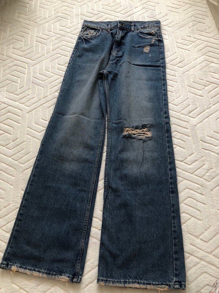 Kadın Geniş Kesim Yırtık Kot Pantolon