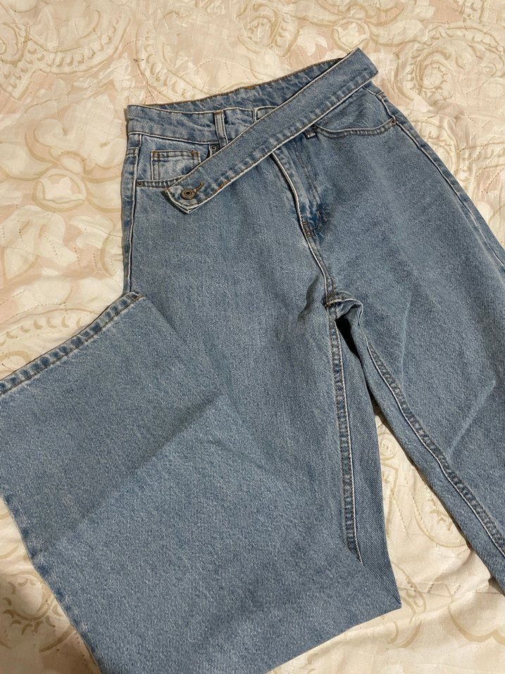 Kadın Geniş Paça Kemerli Midi Denim Pantolon