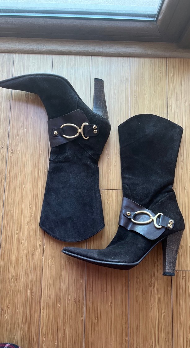 Kadın gerçek Süet acı kahve Tokalı Çizme topuklu 37 no