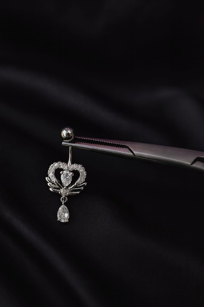 Klasik şıklık ve renkli detaylara sahip, yarık tasarımlı altın renkli gotik kadın piercingi.