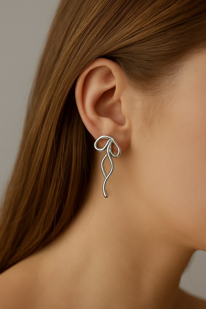 Kadın Gold Gümüş Renk Detaylı Tasarım Küpeler