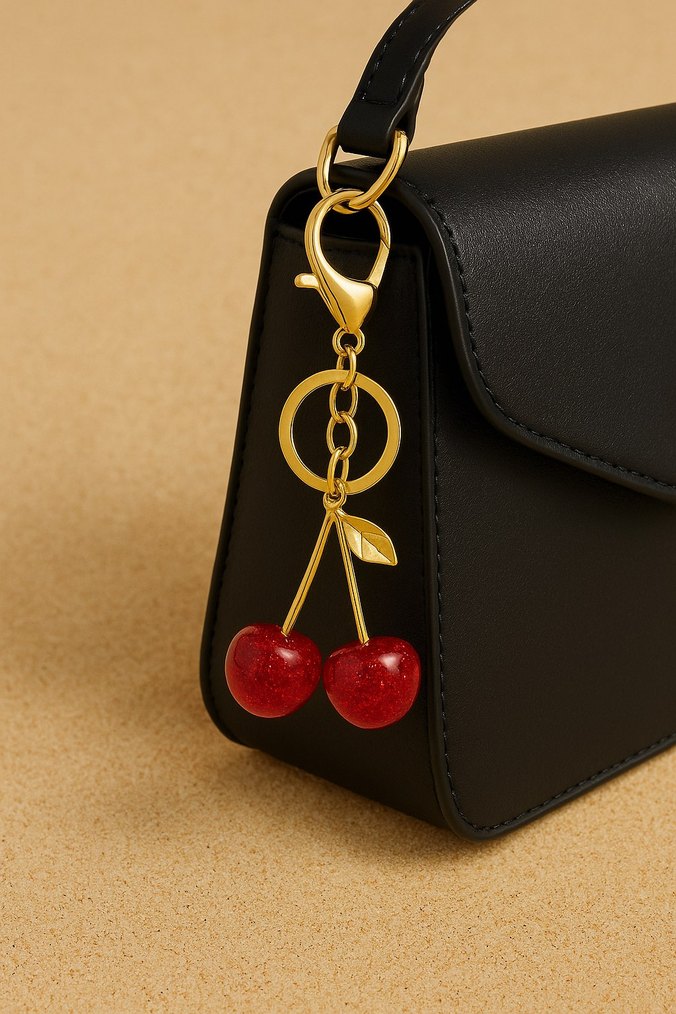 Kadın Gold Kırmızı Bordo Simli Kiraz Anahtarlık Çanta Süsü Charm