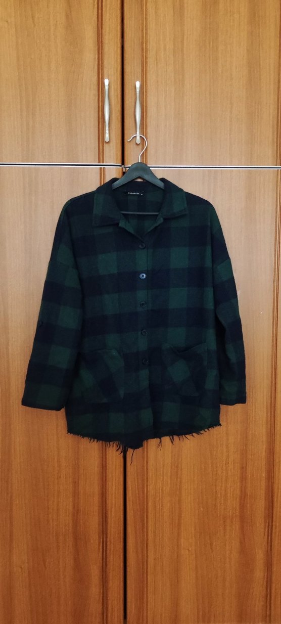 Trendyol Yeşil kareli, düğmeli,yaka detaylı kadın gömleği.Uzun kollu ve bol kesim,rahat bir sokak stili ürünü.36 beden.