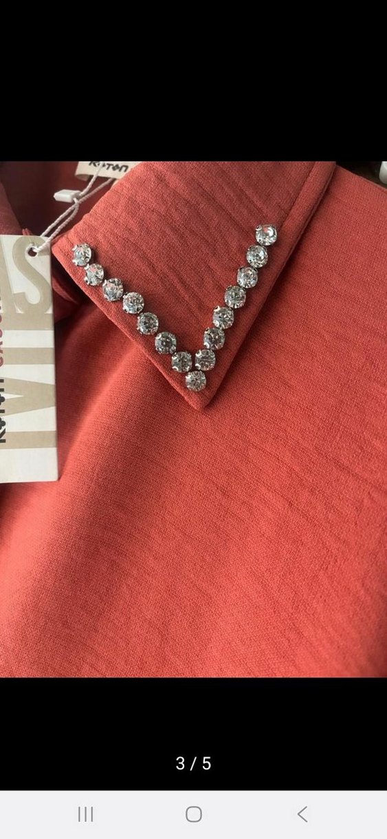 Kiremit rengi V yakalı kadın gömlek, düğmeli ve parlak görünümlü. Uzun kollu.hic kullanılmamış etiketli gömlek tunik ve pantolon takim.rengi cok canli kiremit rengi.fotograflarda tam anlaşılmamış.kol altından eni 56 cm baseni de 56 cm boyu 86 cm.sayfamda ayni takimin siyah rengi de mevcut.inceleyebilirsiniz.#Kadın gömlek#kadintunik#kiremitrengitunik#şıkgomlek#kadintesetturtakim#tesettur