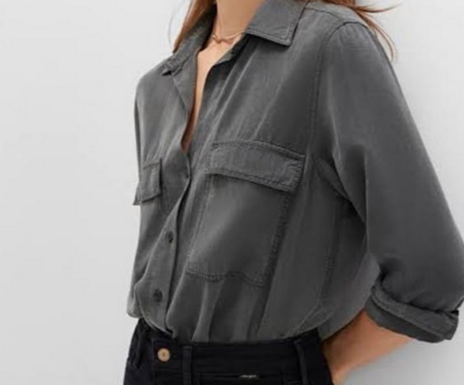 Işıktan dolayı rengi haki gibi çıkmış ama füme antrasit renk tonlarında.etiketi üzerinde hiç kullanılmadı.iç kısmının etiketi yok resimde belirttim. lütfen ölçülerine bakarak alım yapınız. geniş kesim gömleklerdir.#mavi#kadıngömlek#barbie