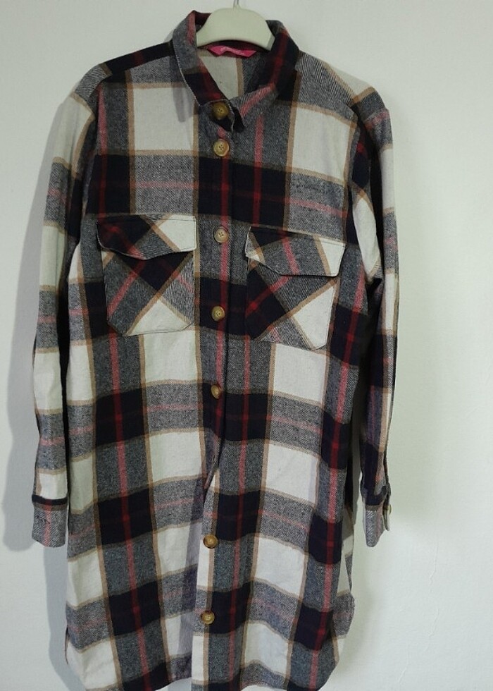 Ekose desen gömlek tunik yandan yırtmaçlı