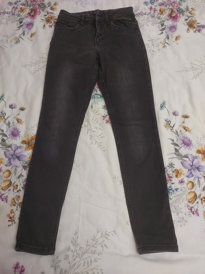 Kadınlar için gri bağcıklı detaylı regular fit, bağcıklı, normal boy denim pantolon. Sokak modasına uygun, günlük kullanıma ideal.