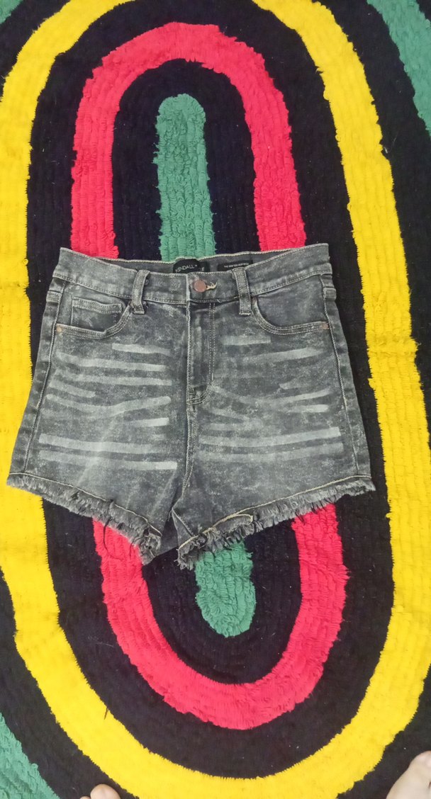 Gri bağlama desenli, bol kesim kısa kadın denim şort. Püsküllü etek ucu ile rahat ve şık, günlük kullanıma uygundur.