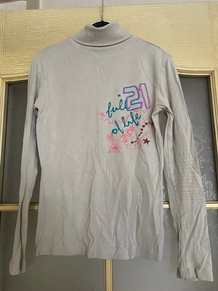 Kadın için uzun kollu, balıkçı yaka ve yumuşak pamuk triko kumaştan yapılmış. Önde renkli baskı ve bol kesim, trend sokak stili için uygun.