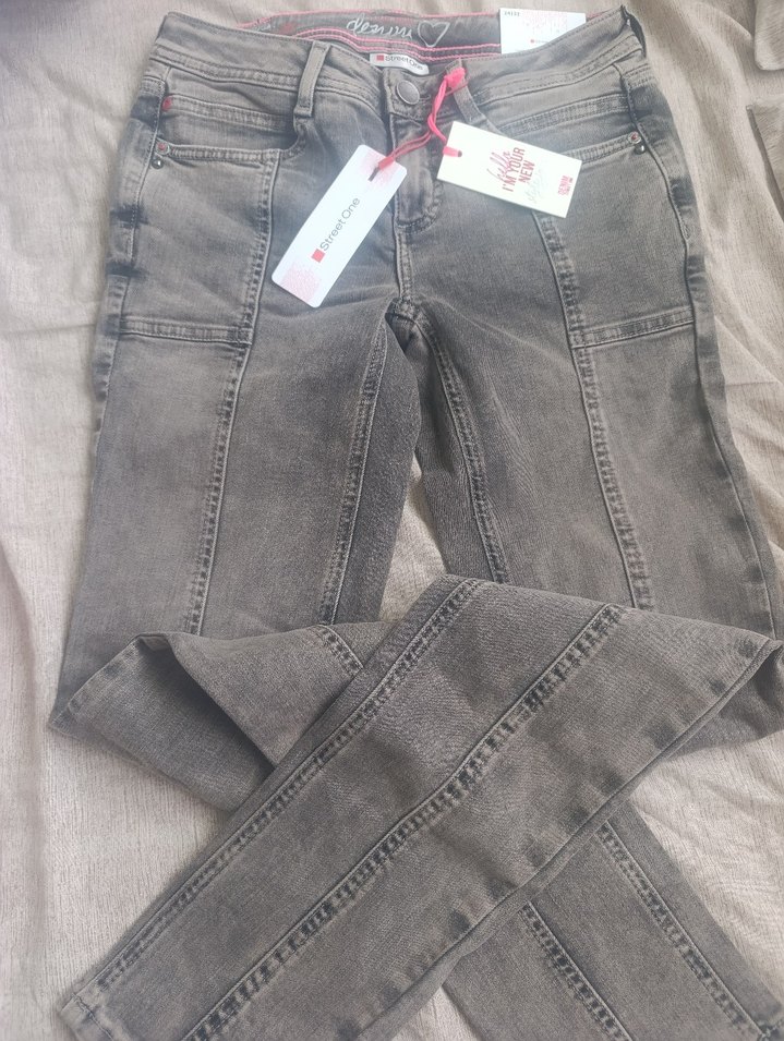 Kadınlar için gri baskılı denimden yapılmış, normal boyda ve regular fit kesime sahip jean. Günlük sokak stili için uygundur.