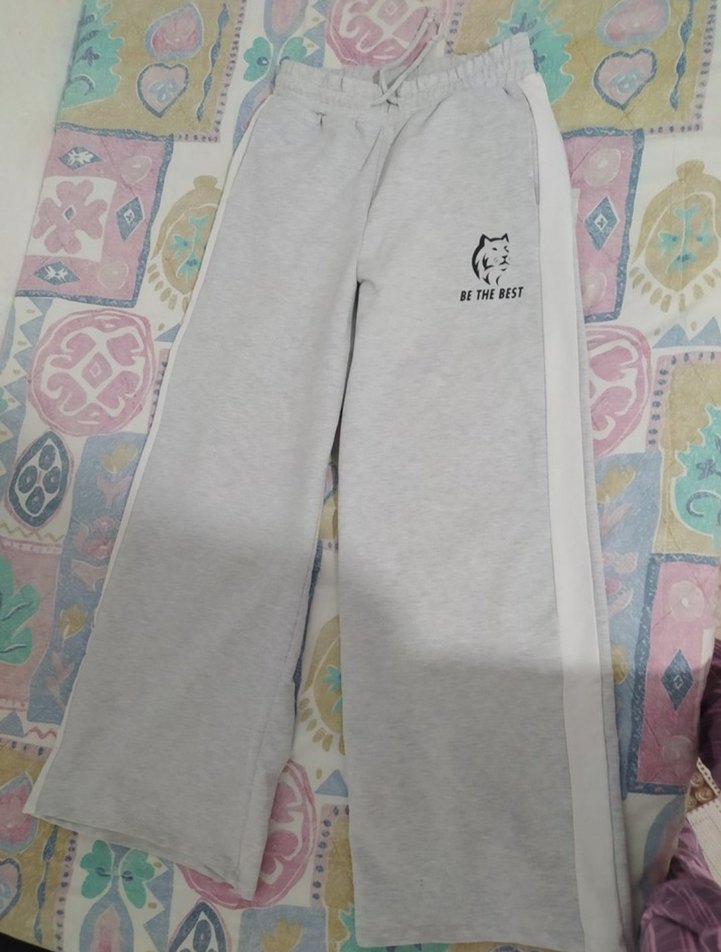 pamuklu kumaştan, gri renkli, bol kesim kadın eşofman altı. Spor ve rahat kullanıma uygun.