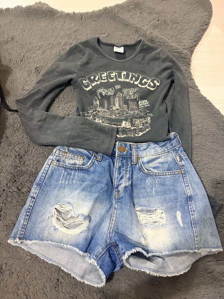 IKILI VEYA TEK ALABILIRSINIZ. BERSHKAdan alındı. Kadınlar için gri renkli, baskılı 'GREETINGS' yazılı uzun kollu crop tişört. Günlük kullanım için uygun, rahat sokak stili.