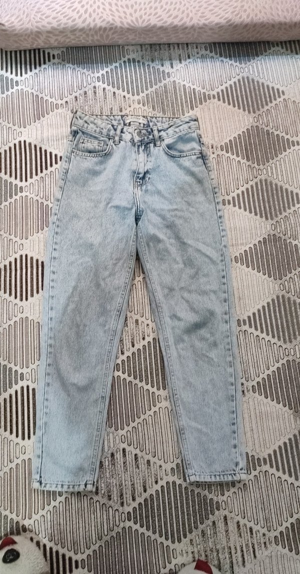 Gri batik desenli bol kesim kadın denim pantolon, midi boyda ve günlük kullanıma uygun rahat bir stil sunar. Rahat ve şık görünüm sağlar.