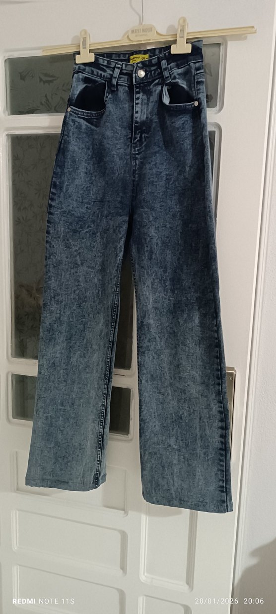 Kadınlar için bol kesim ve midi boyda, gri batik desenli kot pantolon. Günlük rahat kullanıma uygundur. çok az kullanılmış hiç bir sorunu yoktur beli esnektir çok güzel duruyor
