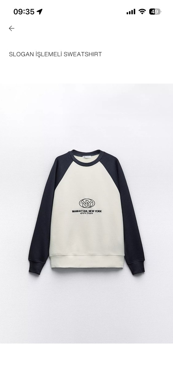 Kadın sweatshirt, yuvarlak yaka ve uzun raglan kollu, gri kollar ve beyaz gövde üzeri "Manhattan New York" baskılı. Rahat kesim, normal boy, yumuşak ve sıcak kumaş.