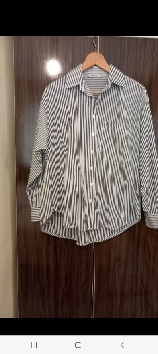 Kadın Gri Beyaz Çizgili Uzun Kollu Gömlek