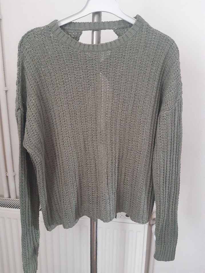 Kadınlar için örgü dokulu, uzun kollu, yuvarlak yakalı gri bohem kazak. Rahat kesimi ve normal boyuyla günlük kullanıma uygundur.