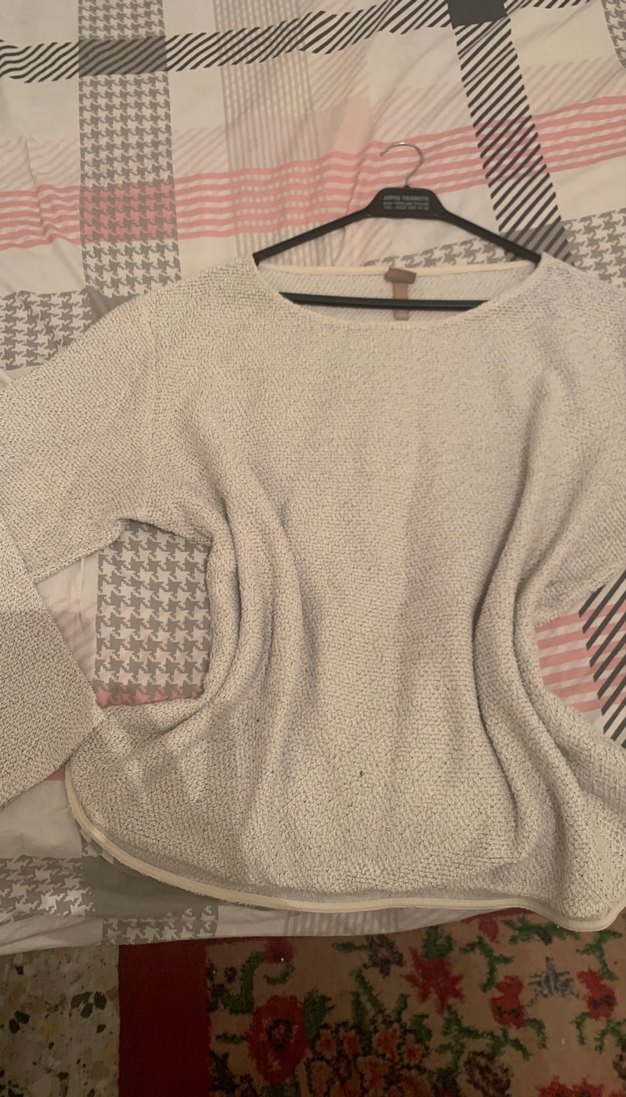 Gri örgü kumaştan, uzun kollu ve yuvarlak yakalı, bol kesim bohem tarzı günlük kullanıma uygun rahat kazak. Boy65cm en 67cm