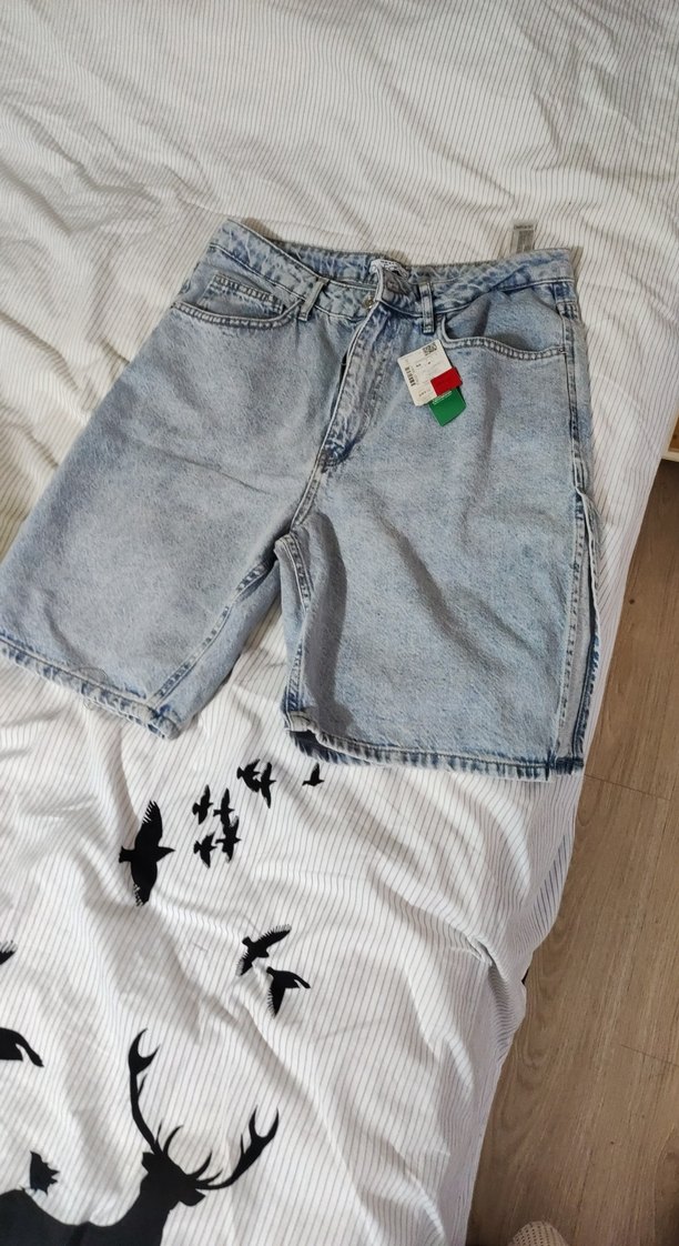 Gri renkte, bol kesim kadın kot şort. Kemerli ve desen içermeyen kısa boyuyla günlük sokak stiline uygundur.