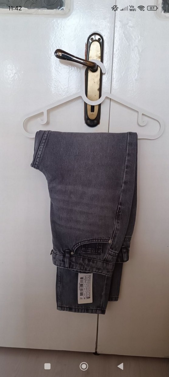 Gri renkte, bol kesim ve tokalı detaylı kot pantolon. Normal midi boy uzunluğunda, rahat ve günlük kullanıma uygun bir model. etiketli urundur