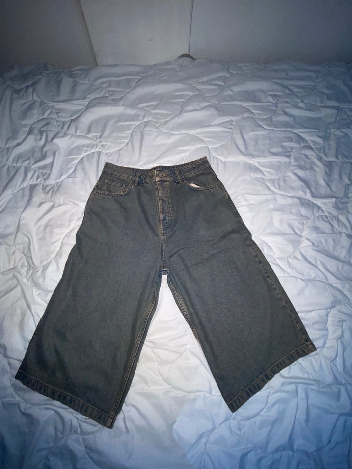 Gri renkte, kemerli, bol kesim midi uzunlukta kadın kot pantolon. Rahat ve günlük kullanım için uygundur.