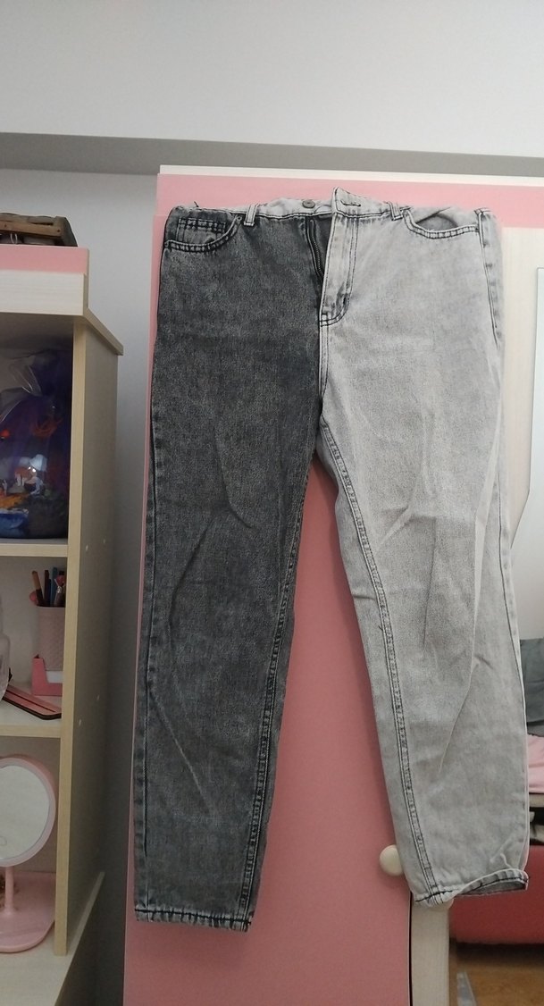 Kadın Gri Çift Tonlu Bol Kesim Jean