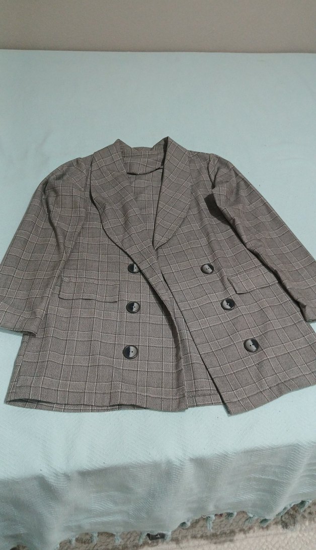 Kadın Gri Çizgili Düğmeli Blazer Ceket