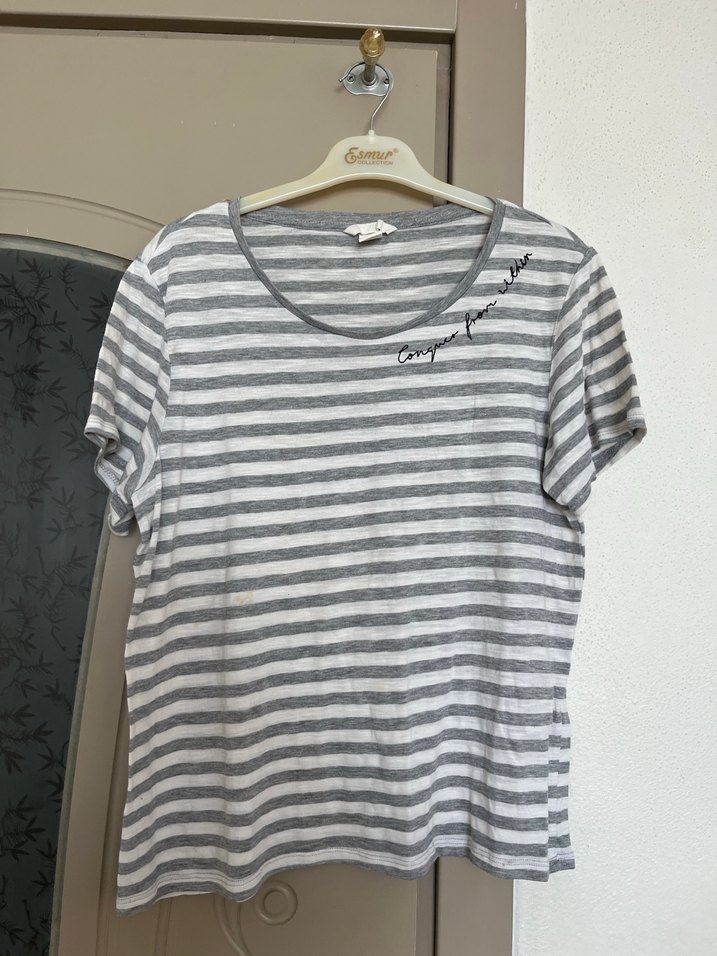 Kadın Gri Çizgili Kısa Kollu Tişört