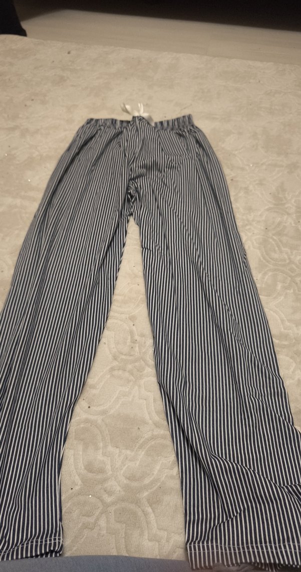 Kadınlar için uzun boy, çizgili ve pilili pamuk pantolon. Rahat kesimiyle günlük kullanıma uygundur.