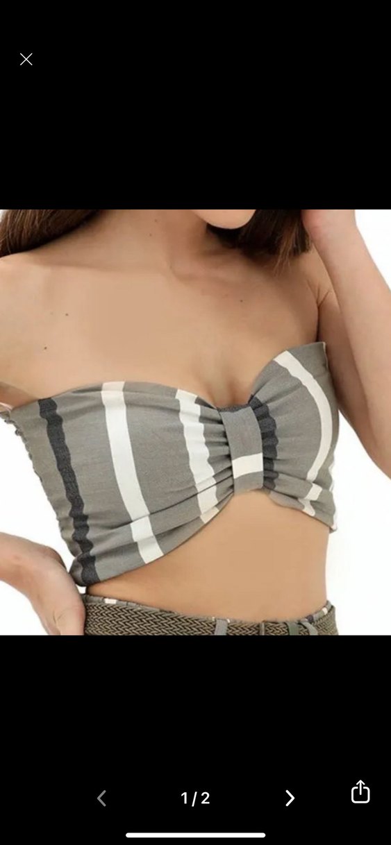 Gri çizgili, straplez ve pileli kumaştan yapılmış, kısa ve mini boyda, sokak stili için uygun, fitted kadın büstiyerdir. Strappy kol detaylıdır.