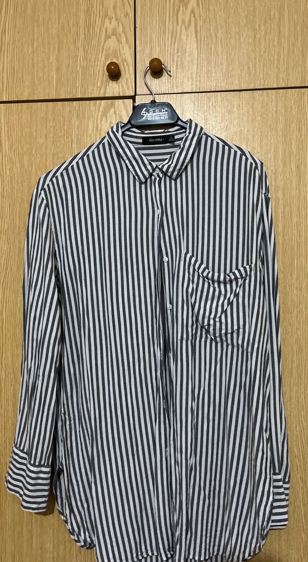 Kadın Gri Çizgili Uzun Kollu Gömlek