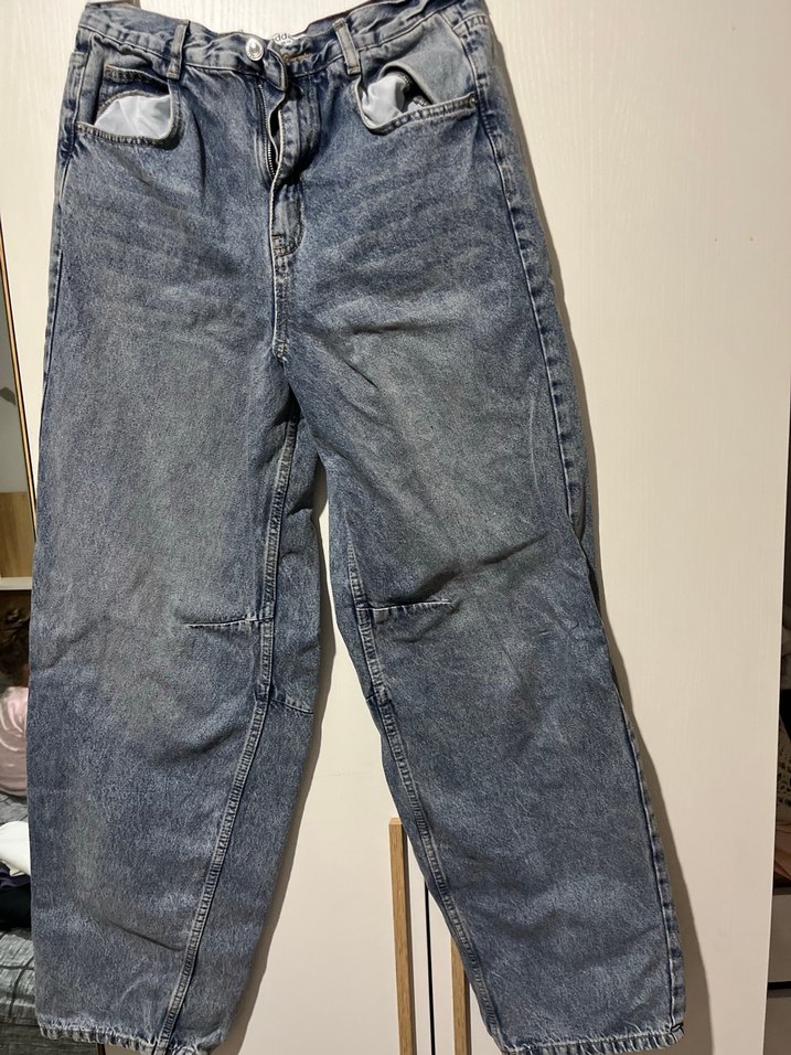 M beden giyiyorum diye aldım fakat bol geldi yıkadım belki çeker diye ama çekmedi. Hiç giyilmedi sadece yıkandı aldığınız gibi kullanabilirsiniz sıfırdır. Beldeli, bol kesim, gri denim kadın jean. Midi boy ve günlük kullanıma uygun rahat sokak stili pantolon.