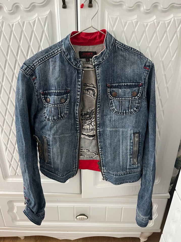 Kadınlar için dar kesim, fermuarlı önü, yakası kesimli ve uzun kollu gri denim ceket. Günlük kullanım için uygun, cep detaylı ve midi boyda bir model.