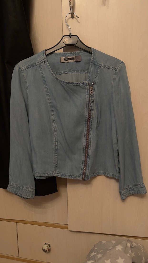Kadın Gri Denim Fermuarlı Ceket