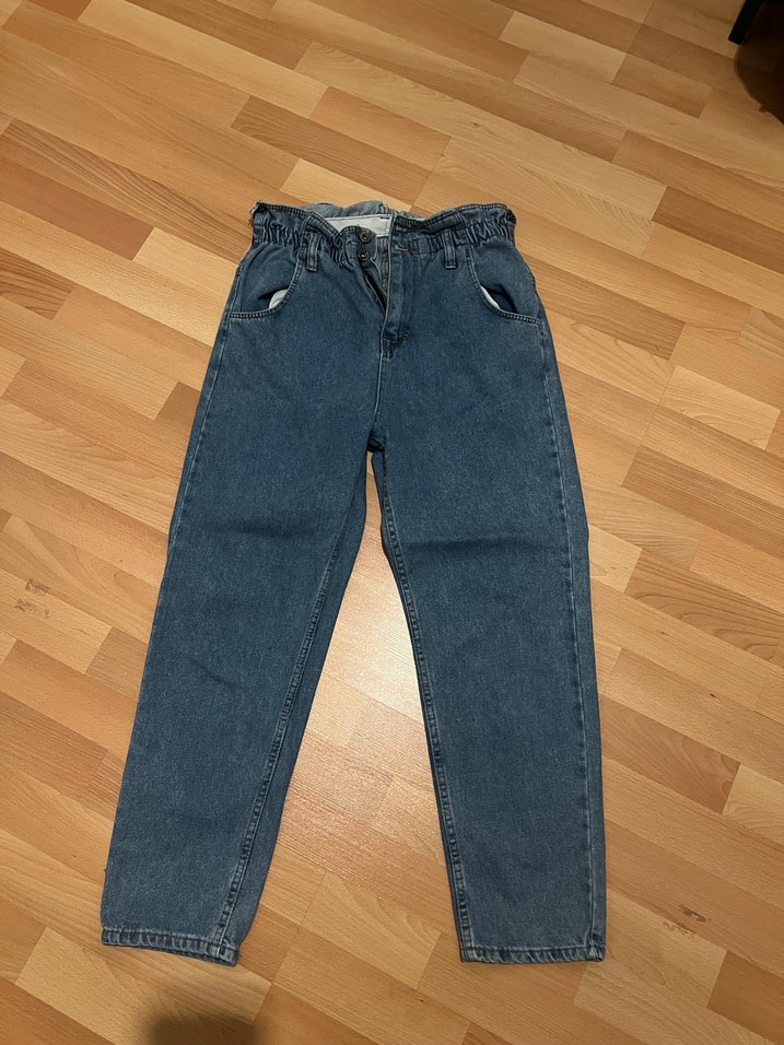 Kadınlar için denim kumaştan yapılmış, kemerli ve bol kesim gri pantolon. Normal boy ve sade tasarımıyla günlük sokak modasına uygundur.